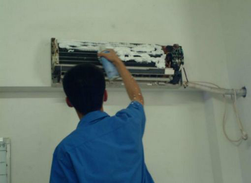 | 正定空调维修师傅给正定用户上门维修清洗空调。 |
